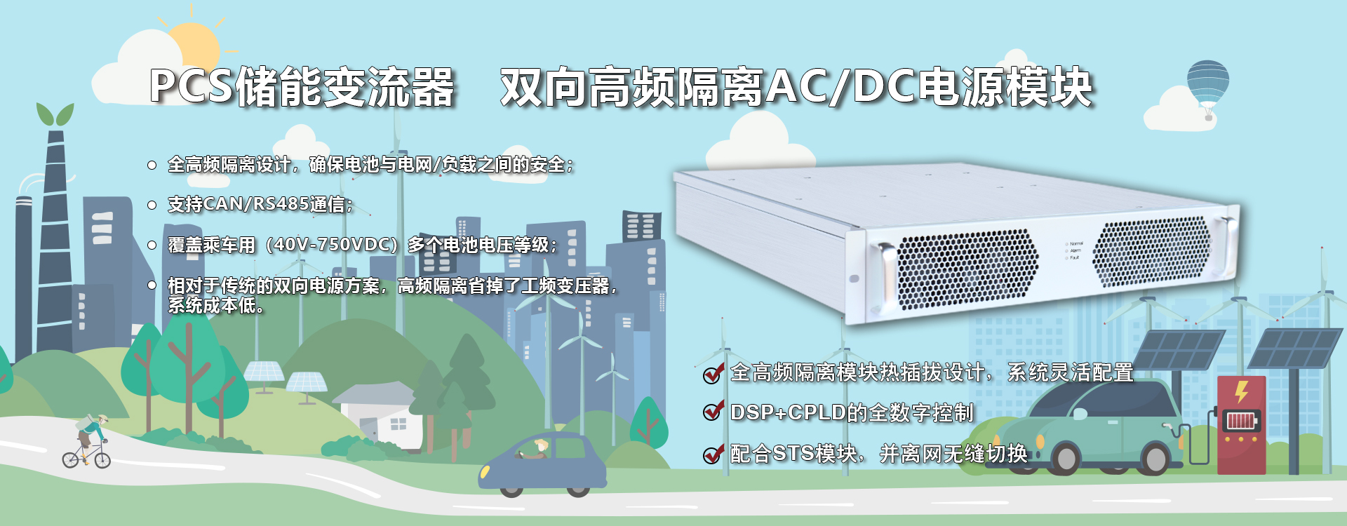 專為中小型工商業(yè)儲能系統(tǒng)量身打造的模塊化變流器產(chǎn)品,支持并網(wǎng)、離網(wǎng)運(yùn)行。該模塊支持雙向能量流動、超寬范圍電池電壓,可與不同類型電池搭配使用,滿足不同應(yīng)用場景的需求